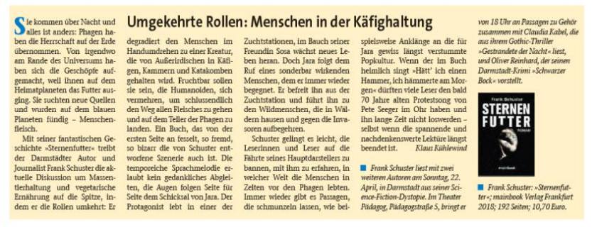 Rezension im „P-Stadtkultur-Magazin“: Frank Schuster und sein neuer Roman Sternenfutter
